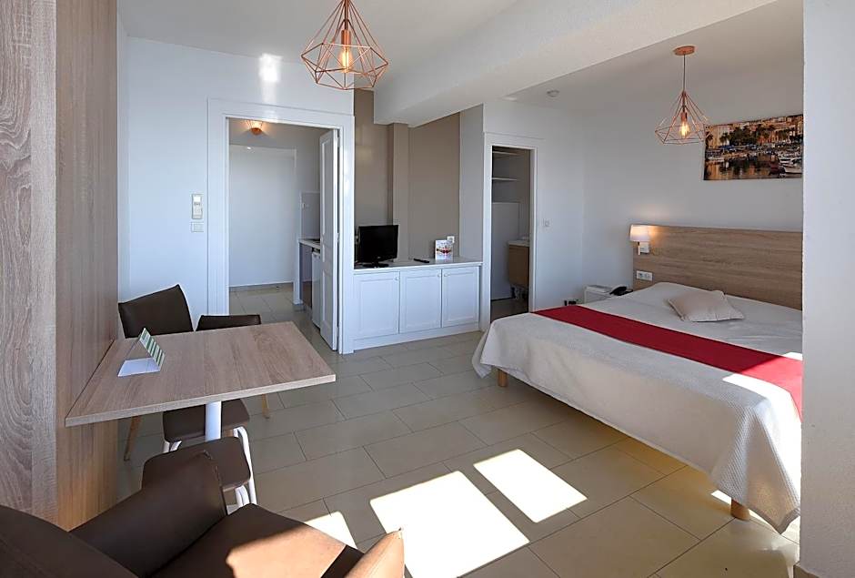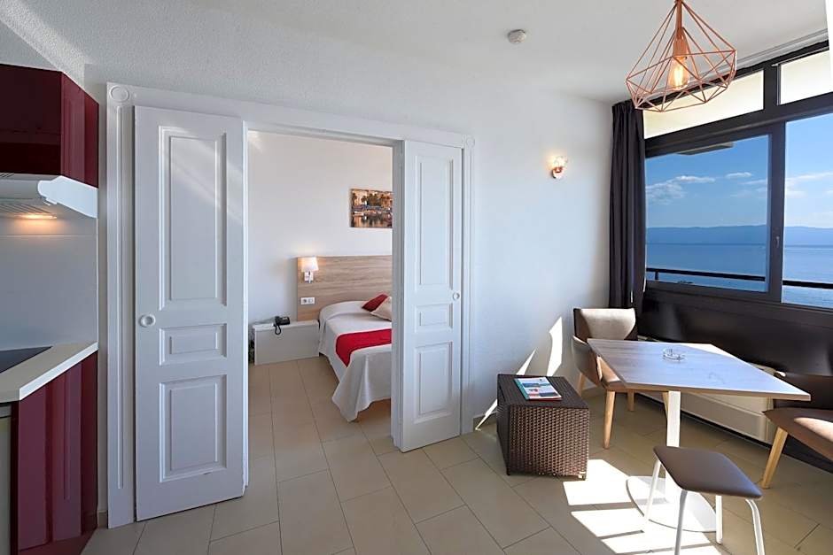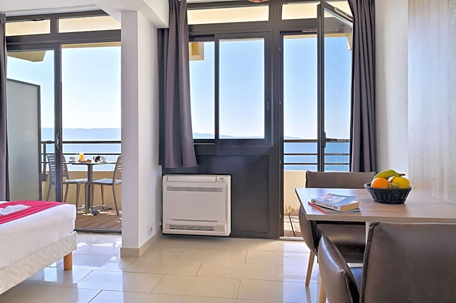 This hotel boasts an array of fantastic amenities, including a free outdoor swimming pool with a kids' section, a sauna, fitness center, and a sun deck for ultimate relaxation. The property is pet-friendly (with additional charges) and provides free Wi-Fi and air conditioning in every room. Guests can enjoy breathtaking views, along with access to a private beach complete with umbrellas and loungers. With over 1300 stellar reviews, Résidence Les Calanques is sure to impress even the most discerning traveler.